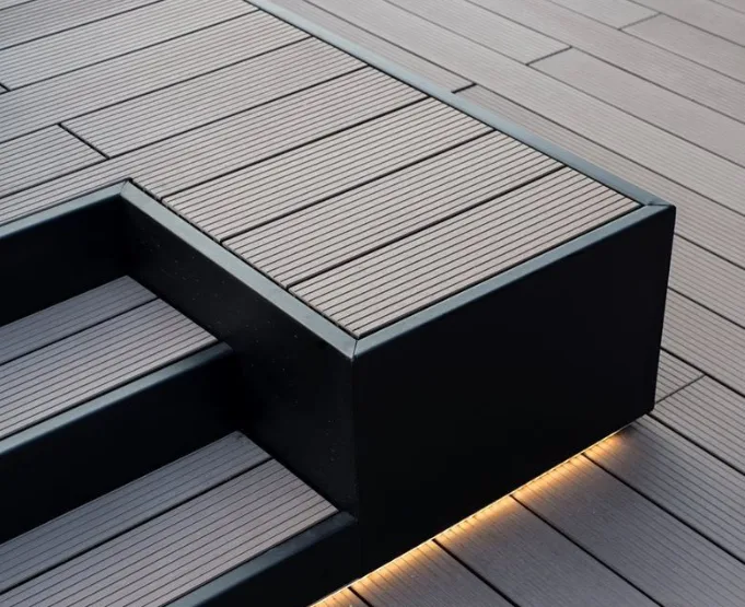 - Die Verwendung desselben WPC-Materials sorgt für ein einheitliches, elegantes Erscheinungsbild.