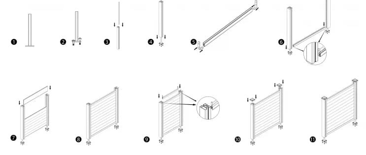 Panel ogrodzeniowy, słupek WPC lub słupek aluminiowy, osłona boczna, szyna górna i dolna, nasadka słupka, wzmocnienie narożne, podstawa słupka, śruba rozporowa itp.